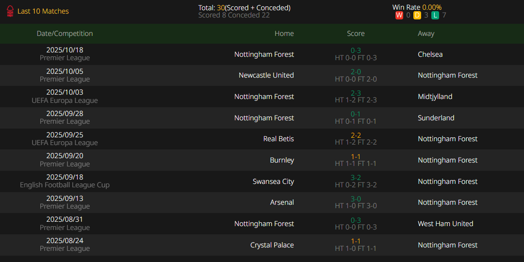 Nottingham Forest’s home ground has now become a synonym for embarrassment: They have lost all 4 recent official home games, failing to score a single goal and being conceded 3 goals three times. The fans’ cheers in the stands have long turned from encouragement to sarcasm. New coach Sean Dyche can be called an "emergency firefighter"—after the club owner’s farce of changing coaches for the second time in 39 days, this youth academy-born coach took office in a hurry with club legends. The time left for them to adapt to the tactics is only 48 hours—this time is barely enough for the players to remember the new formation, let alone expect complex tactics. The team’s squad is simply a "injury report": Main right-back Ola Aina has a hamstring injury and will be out until the end of the year, midfield playmaker Dominguez is sidelined, and even the goalkeepers are not fully fit. The defensive line is full of loopholes—they have not kept a clean sheet since April, and substitute defender Serge Aurier has a terrible error rate of 33%. Facing Porto’s attacking lineup, it will be difficult for him to adapt. However, Forest is not completely without the ability to fight back—28% of their goals come from set pieces, and their corner kick tactic efficiency ranks among the top five in the league. The 1.94-meter Milenkovic and Wood, who is good at aerial duels, will play an important role in this game.